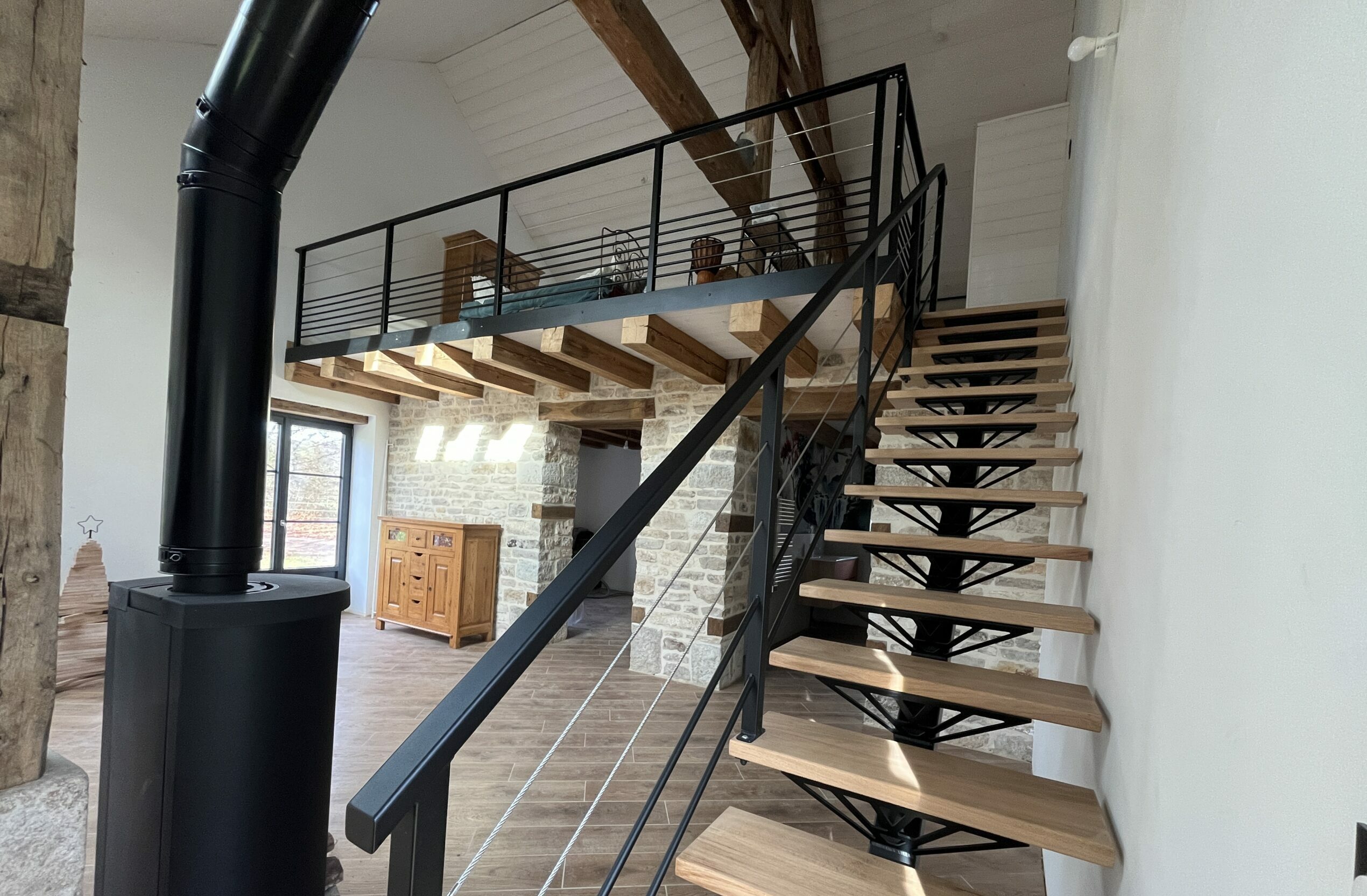 Escaliers sur-mesure : Que ce soit en construction ou en rénovation, nous concevons des escaliers adaptés à votre habitat, disponibles dans de nombreux styles et finitions.